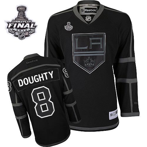 Reebok Los Angeles Kings #8 Drew Doughty Black Ice Premier With 2014 Stanley Cup Finals Jersey
