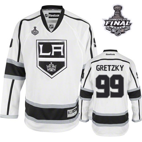 Reebok Los Angeles Kings #99 Wayne Gretzky White Road Premier With 2014 Stanley Cup Jersey